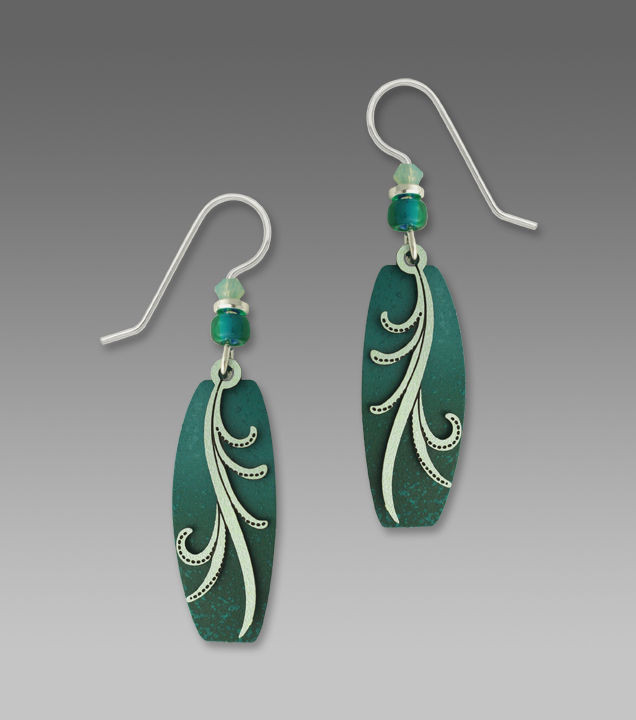 Deep Teal Green with gray Filigree overlay piece Earrings. Sterling Silver Earwires. Earrings Measure 1" Long Plus Wire. Made in the USA!