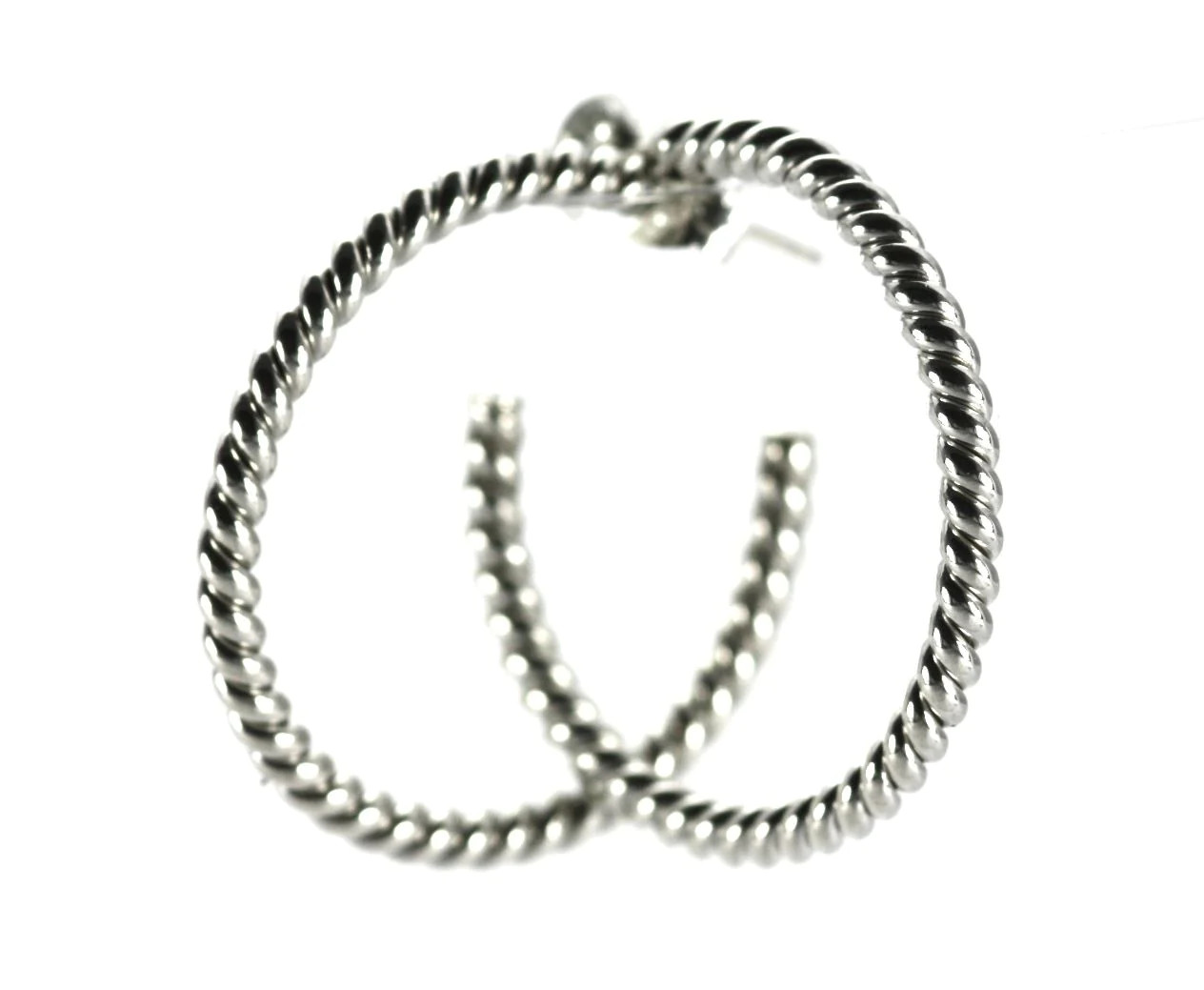 Beautifully detailed cable twist hoop earrings. These earrings are sterling silver and measure about 1" long and wide. Hand-crafted in Bali.