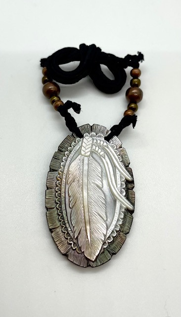 This one-of-a-kind shell gorget measures approx. 1 3/4" long and 1 1/8" wide