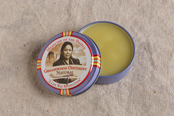 Greasewood or Chaparral grows throughout the desert regions of Arizona and beyond. When it rains here you can smell a rich earthy scent that permeates the air where it is growing. Many creatures make their homes under the ground beneath the branches of this healing bush. It blooms twice a year filling the desert with yellow flowers and than white puffs of seed. We gather from these bushes by stripping the fresh green leaves from the stems that appear right before they bloom. Pulling a handful at a time and slowly filling our cloth bags. When they are full we walk home, emptying the bags onto drying screens in our drying house. After they are dry they crush the leaves from the stems and separate out the big stems. Later they grind the leaves just before mixing with the other oils and ingredients that go into this incredible ointment/salve. Organic Avocado oil, Kukui nut oil and Shea nut butter are used because they are all purported to be beneficial for eczema and psoriasis.