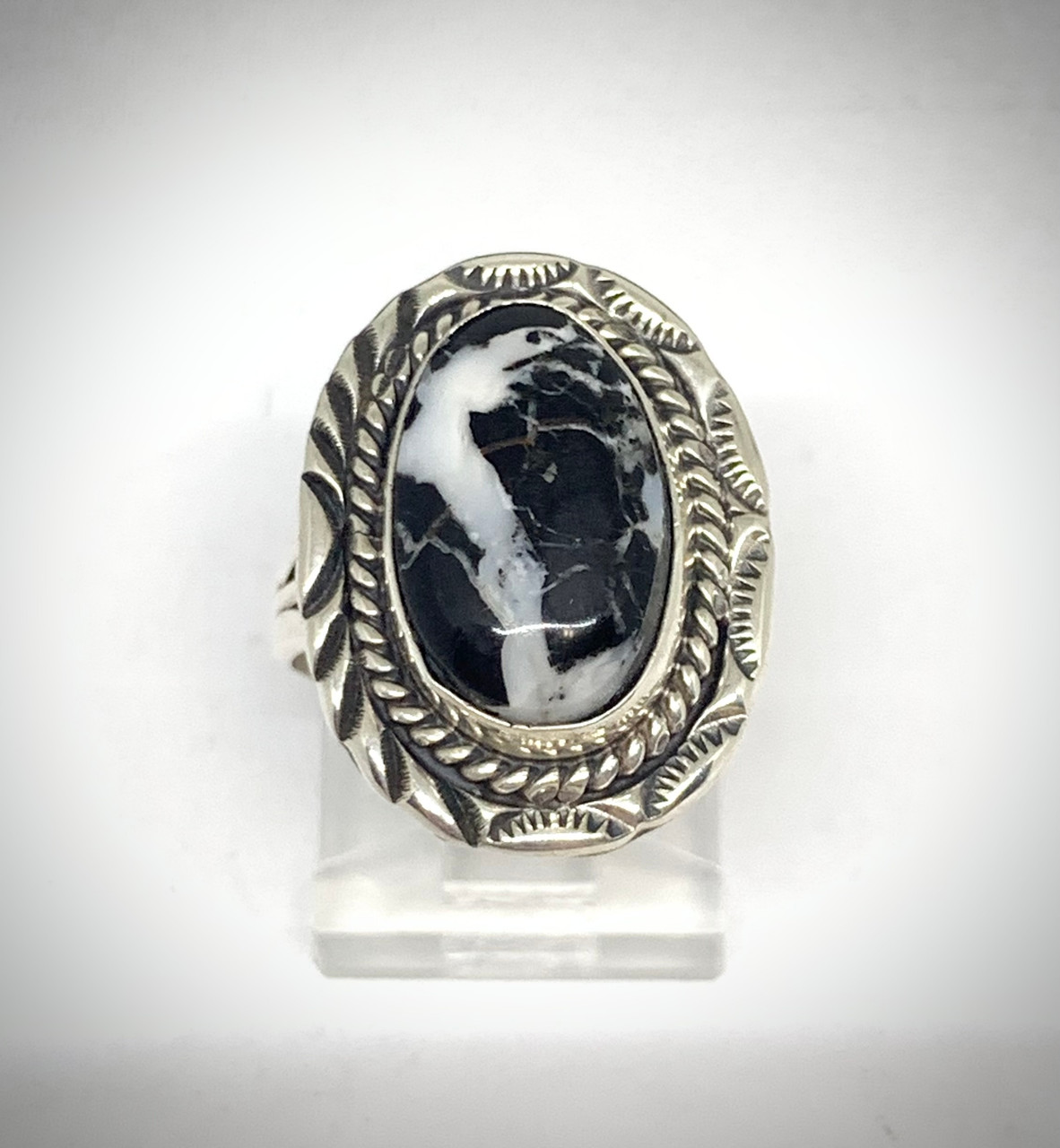 Beautiful White Buffalo Turquoise ring with stunning sterling silver detail.