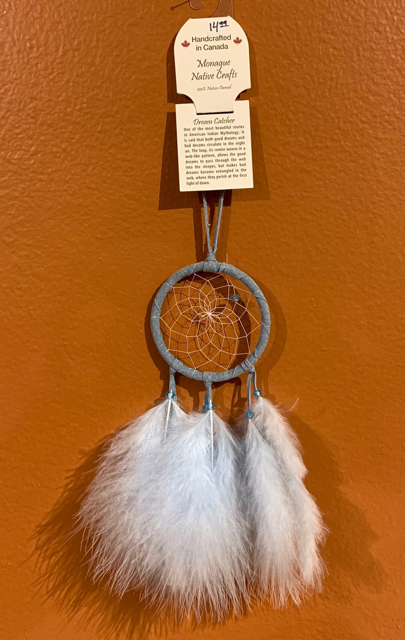 This 2" dreamcatcher is a perfect size for over a child's bed or to adorn your rear-view mirror (no dreaming while driving!). Made by an Ojibway owned company from British Columbia, it is sure to keep those bad dreams away.