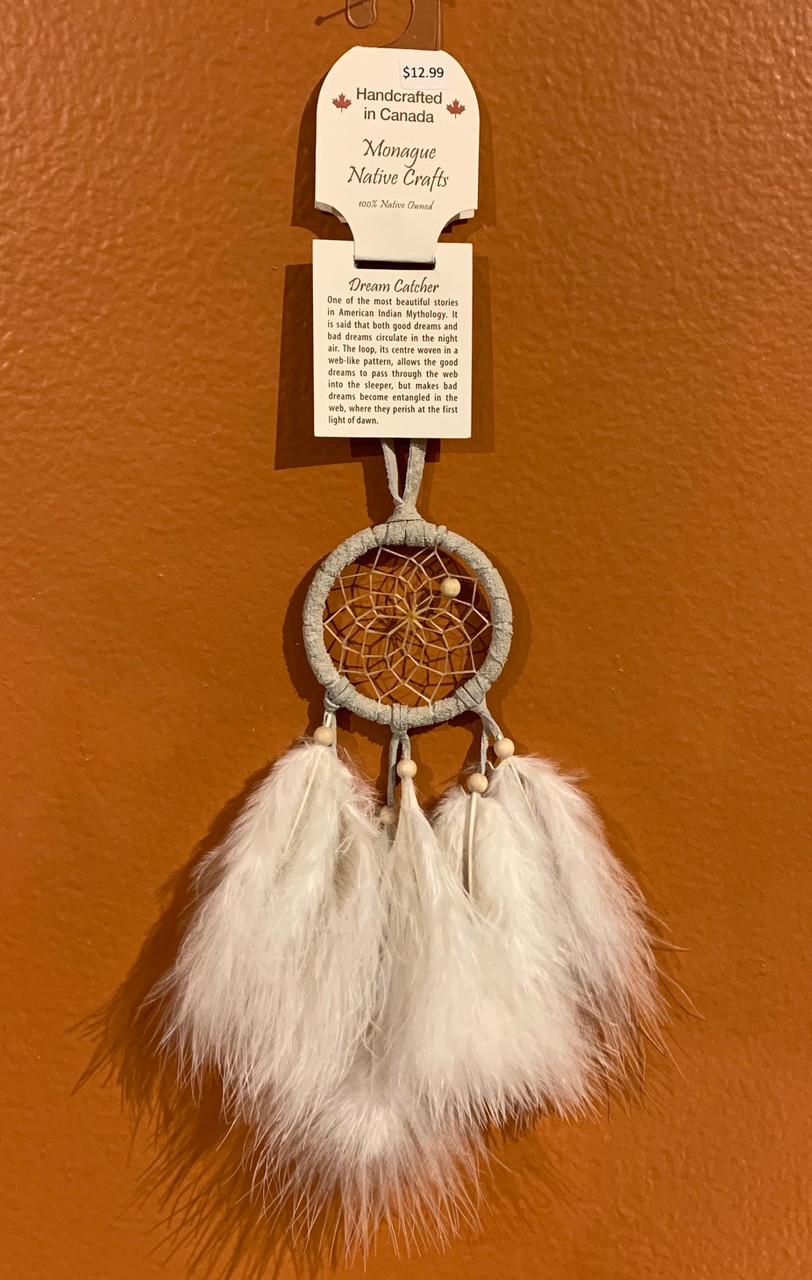 This 2" dreamcatcher is a perfect size for over a child's bed or to adorn your rear-view mirror (no dreaming while driving!). Made by an Ojibway owned company from British Columbia, it is sure to keep those bad dreams away.