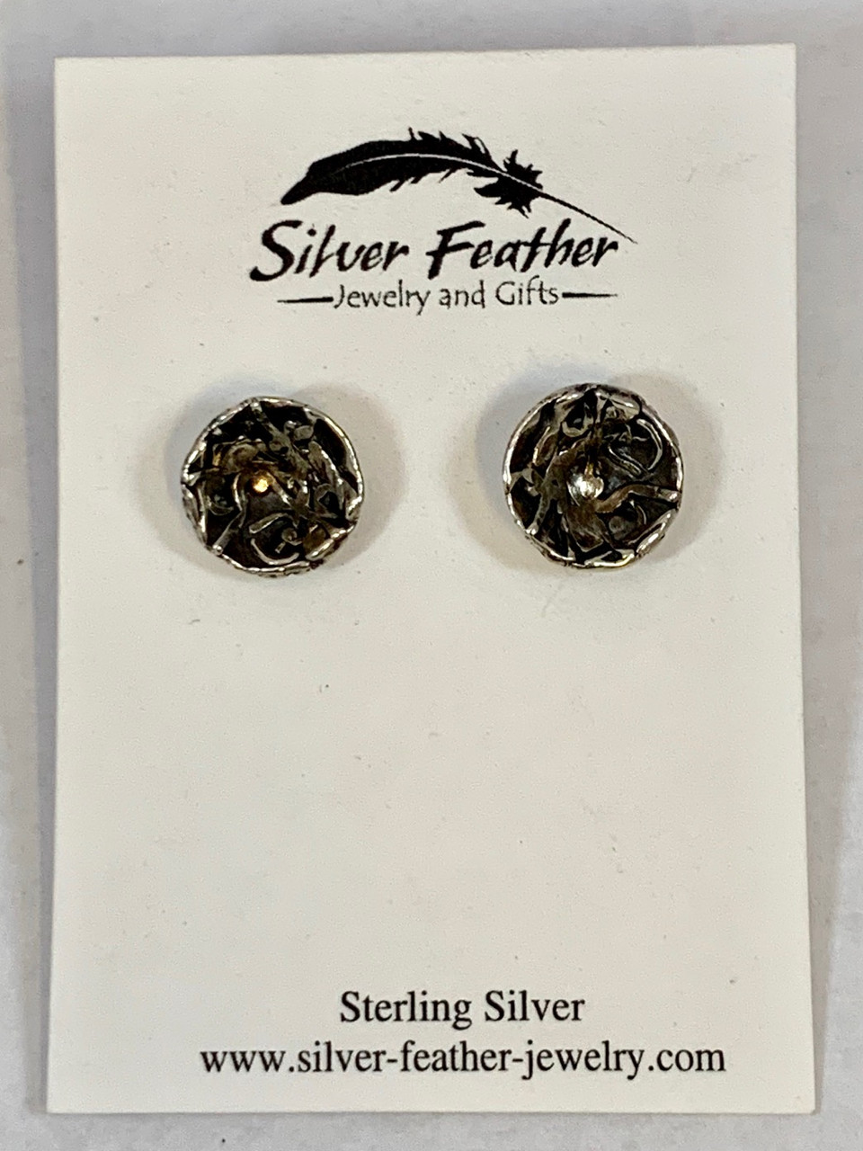 Great everyday earrings in sterling silver with wonderful texture and oxidation. They are 3/8" (one third of an inch) in diameter and cupped shaped which gives them great dimension. Handmade by Jivita Harris Casey who gets her inspiration from the high deserts of California.