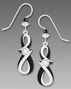Black and White swirl design with clear crystal. Sterling Silver Earwires. Earrings Measure 1" Long Plus Wire. Made in the USA!