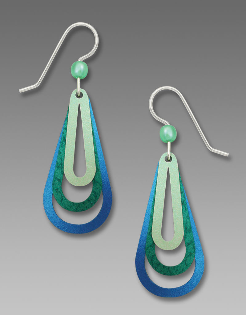 3 Piece Dusty Gree, Teal and Blue pieces. Sterling Silver Earwires. Earrings Measure 1 1/2" Long Plus Wire. Made in the USA!