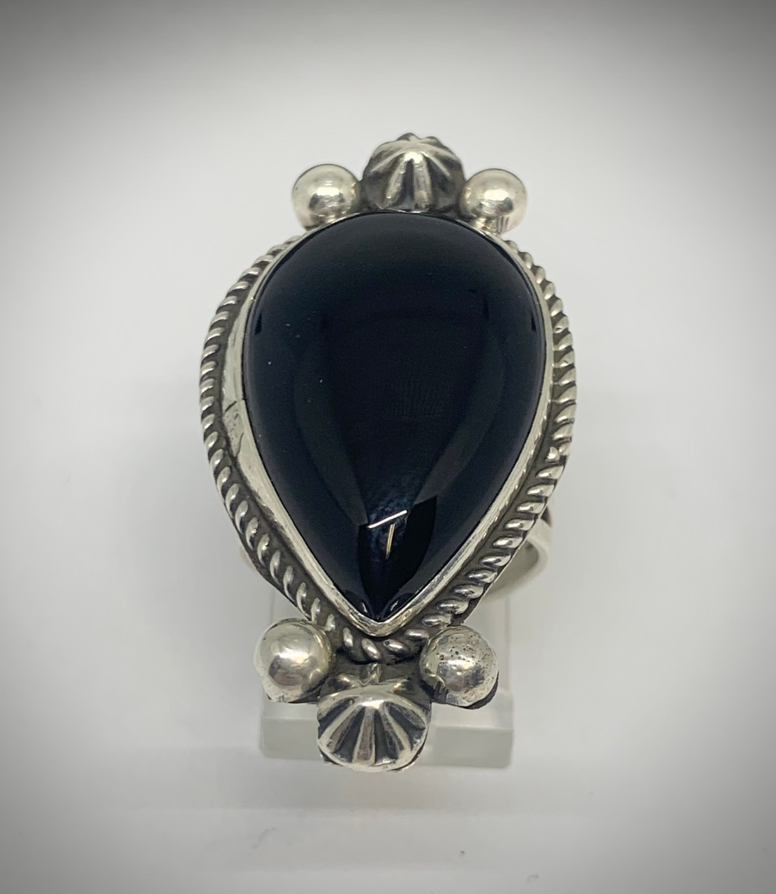 Stunning statement Black Onyx ring by Navajo artist Linda Yazzie.