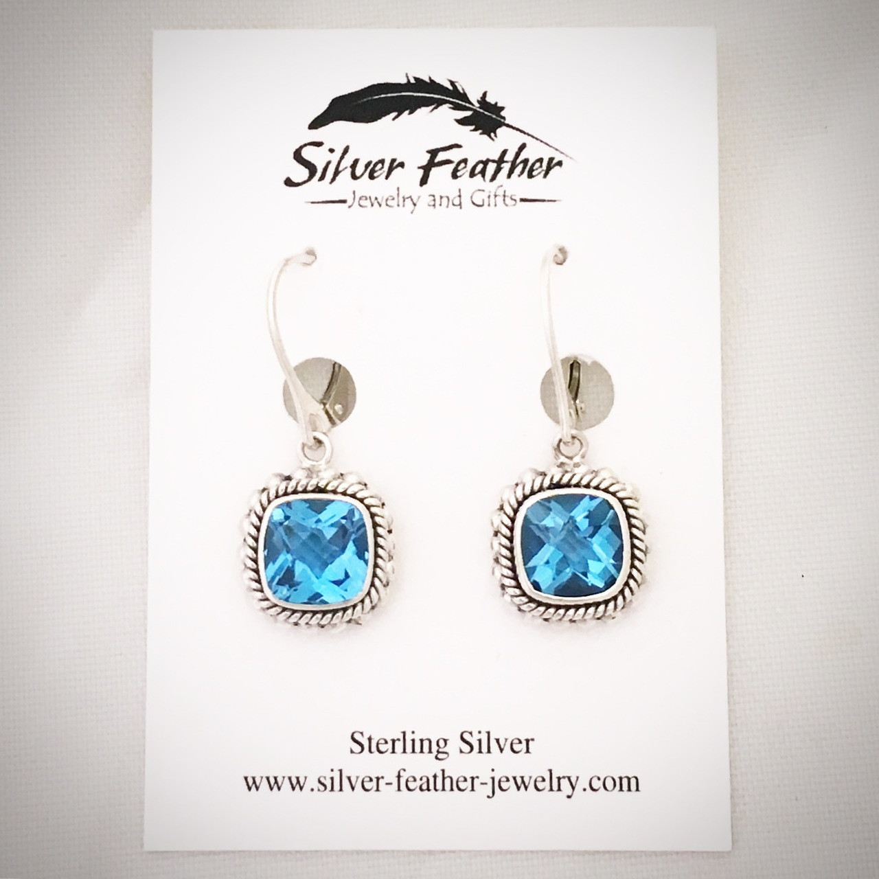 Beautiful Bali-style Sterling Silver and Blue Topaz lever-back wire earrings. Earrings measure approx. 5/8" long from the bottom of the ear wire. Handcrafted in Indonesia.