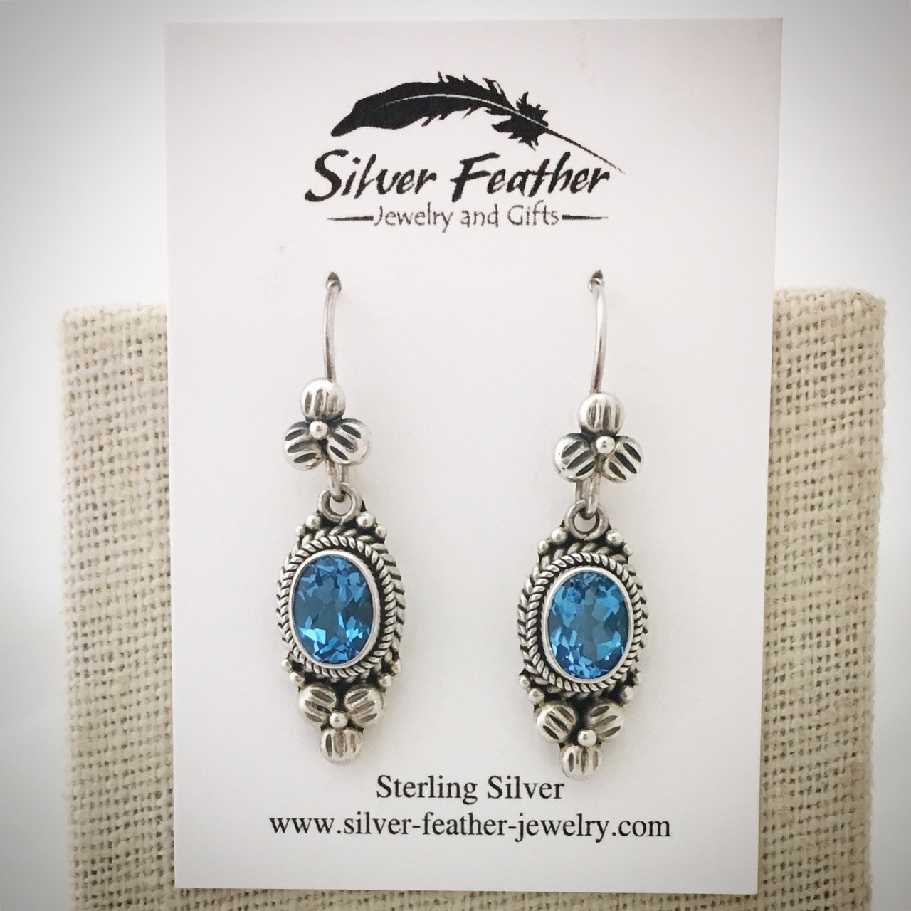 Beautiful floral Sterling Silver and Blue Topaz earrings. Earrings measure approx. 3/4" long from the bottom of the ear wire. Handcrafted in Indonesia.