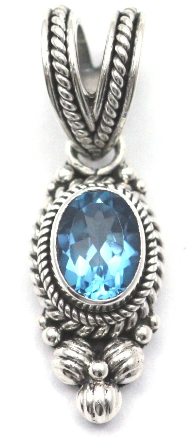 Sparkly Blue Topaz necklace with flower and rope detailing. The stone measures 6x8 mm. Hand-crafted in Bali. This necklace comes in a snake chain, please choose your desired length.