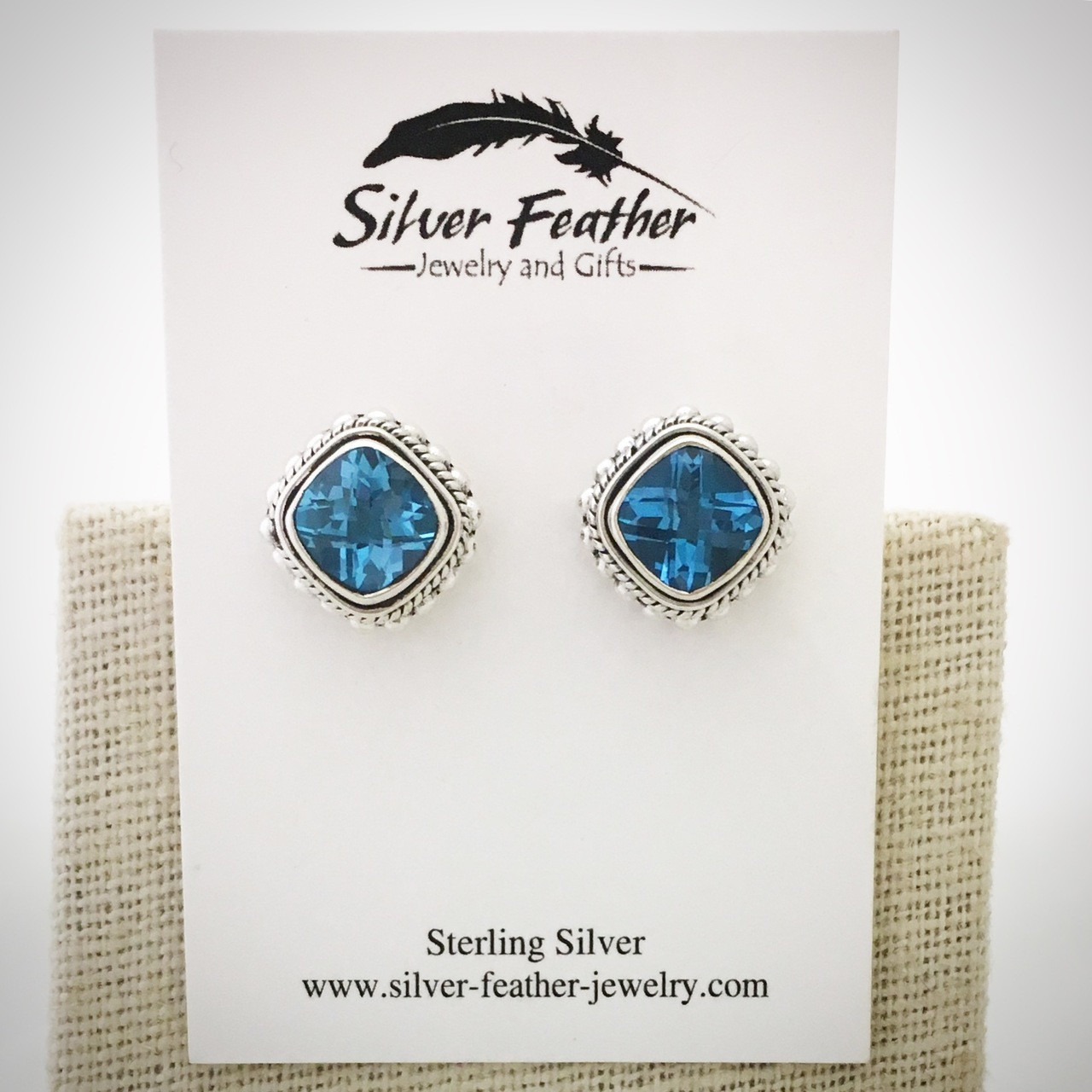 Beautiful Bali-style Sterling Silver and Blue Topaz post earrings. Earrings measure approx. 1/2" by 1/2". Handcrafted in Indonesia.