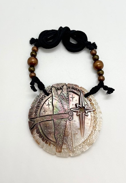 Dan Townsend, nationally recognized artist of Creek and Cherokee heritage, carves exquisite early Southeastern designs into shell, bone, glass, and jade. The primitive motif he uses date from 500-1500 A.D. A lifelong student of Native American art and culture, Dan's work is found in museums, archaeological sites, tribal towns, and also in many private collections. Townsend was among a select number of artists invited to display their work at the opening of the Smithsonian's National Museum of the American Indian. His work is also included in the exhibition beginning 2021 Spiro and the Art of the Mississippian World