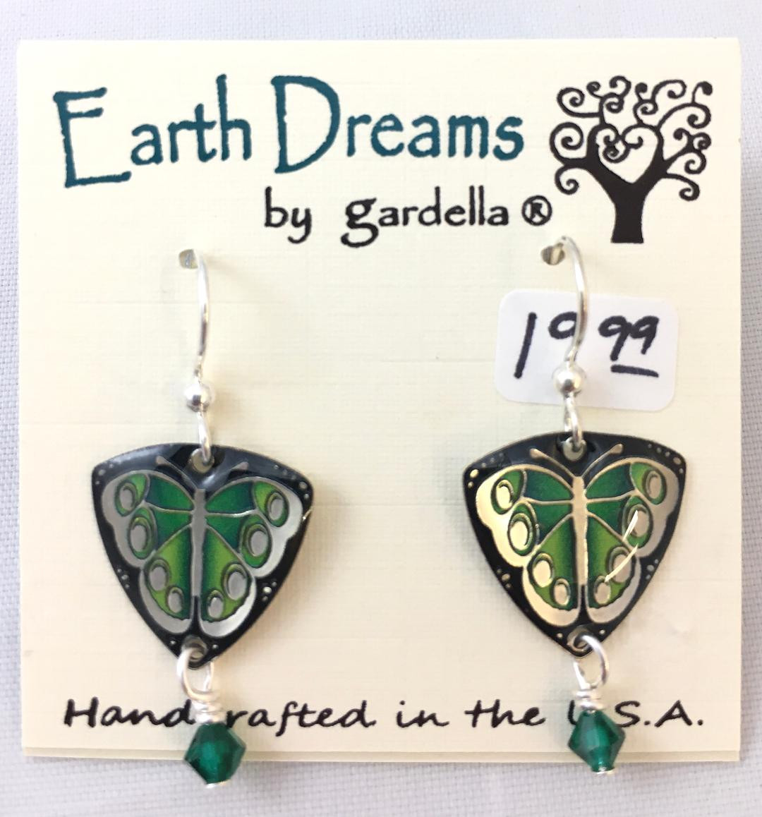 Earth Dreams designs are silver, bronze or copper plated brass with Czech or Swarovski Crystals. The ear wires are plain or gold plated surgical steel.