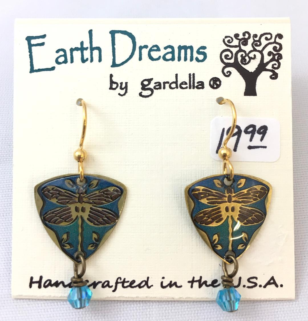 Earth Dreams designs are silver, bronze or copper plated brass with Czech or Swarovski Crystals. The ear wires are plain or gold plated surgical steel. Earrings measure 1-3/8" long, including ear wire. Handcrafted in the USA!