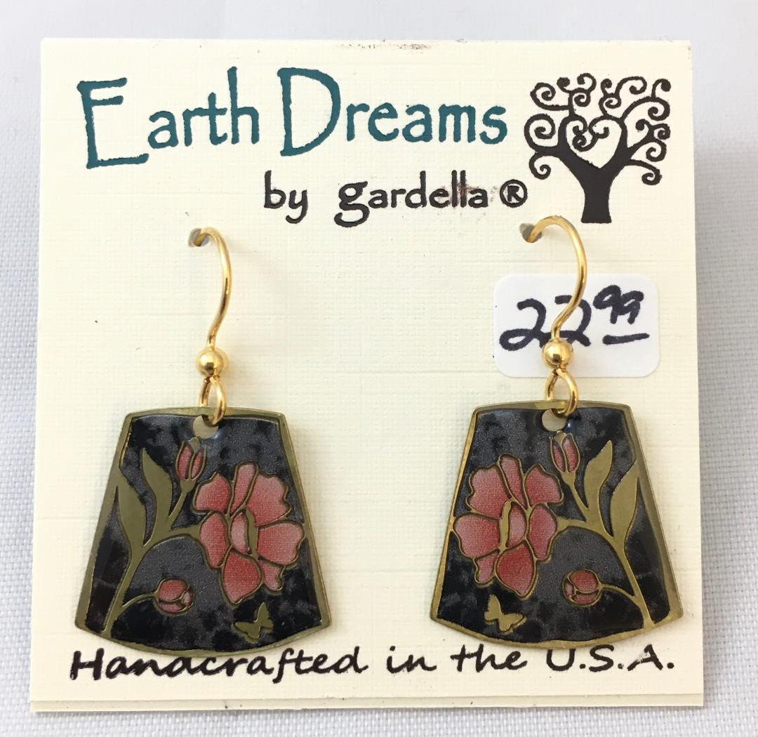 Earth Dreams designs are silver, bronze or copper plated brass with Czech or Swarovski Crystals. The ear wires are plain or gold plated surgical steel. Earrings measure 1-1/4" long, including ear wire. Handcrafted in the USA!