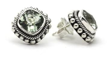 Green Amethyst and sterling silver post style earrings. These are approximately 1/2" in diameter. Fair trade and hand made in Bali.