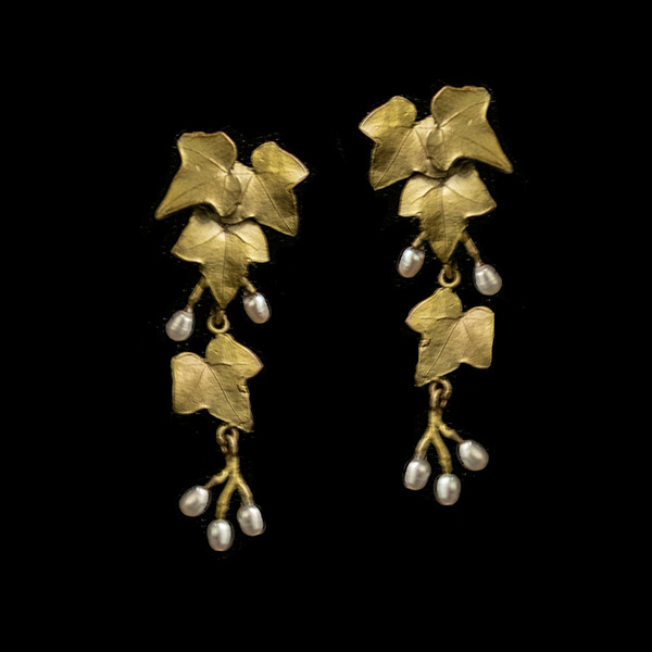 Stunning ivy earrings by New York Artist Michael Michaud. These earrings are hand cast bronze and accented with fresh water pearls.