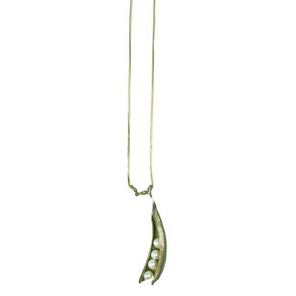 Artist Michael Michaud uses metals, pearls, and stones to capture the exquisite beauty of nature in his designs. The pea pod collection features hand patinaed bronze with fresh water pearls. Pendant is on a 16" adjustable snake chain. Handcrafted in the USA!