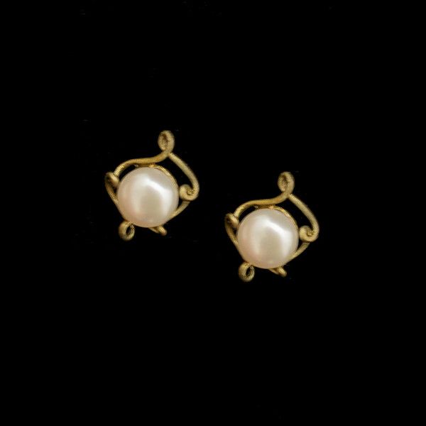 Simple and classic Peapod post earrings designed by artist Michael Michaud. These earrings are genuine freshwater pearls that are encased in hand patinaed hand cast bronze.
