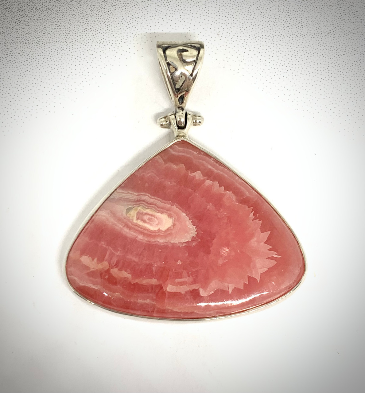 Stunning Rhodochrosite pendant. While this is the state stone of Colorado, it is found primarily in Argentina.