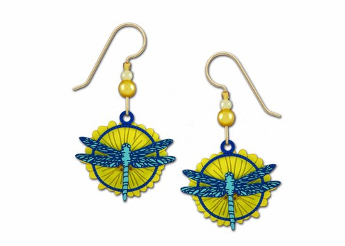 These double layered Sienna Sky earrings will let you wear summertime year round. A beautiful dragonfly resting on a sunflower is the perfect earring for a funky statement. They are about 1" long and are accompanied by hypoallergenic sterling silver ear wires. Proudly made in the USA!