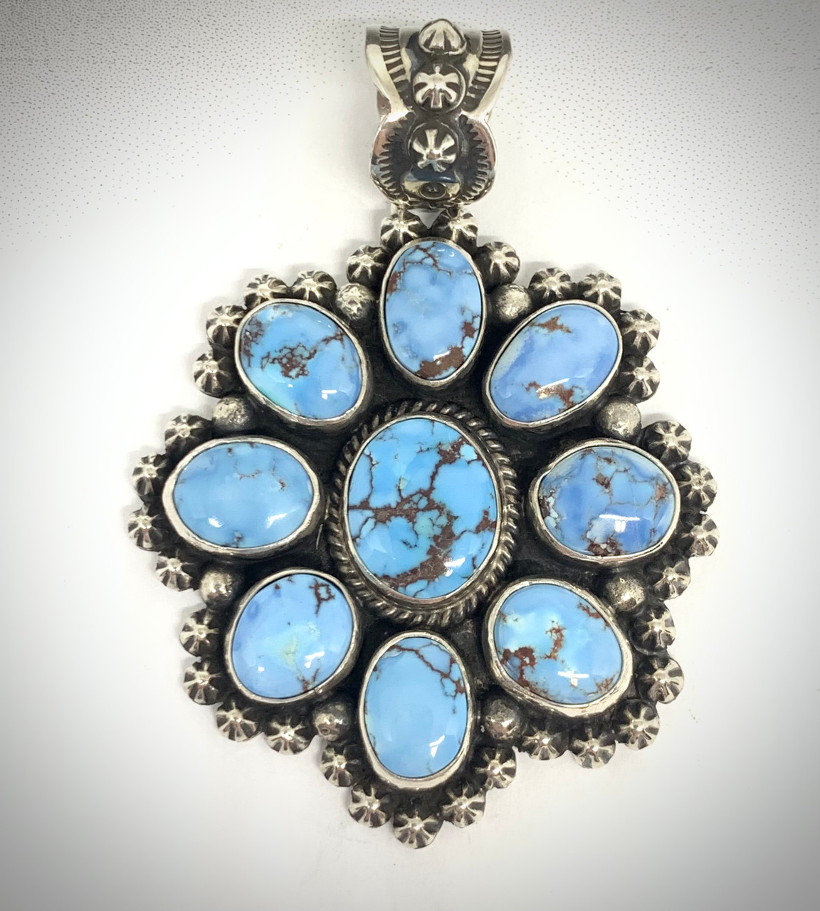 Absolutely stunning Golden Hill Turquoise cluster pendant by Navajo artist Happy Piasso.